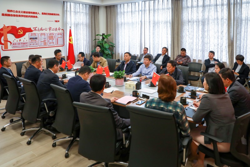 實地參觀后,謝軍副秘書長一行領導與校領導召開了調研座談會。吳成柱董事長對市、區各級領導的蒞臨表示熱烈歡迎,并對我校致力于打造“國際化先鋒示范學校”,為社會培養具有民族自信、勇于創新、敢于擔當的未來世界杰出公民的愿景與目標做了具體的說明。李建民總校長著重向各位領導匯報了校園規劃、辦學思想、教學資源、硬件配置等工作情況。