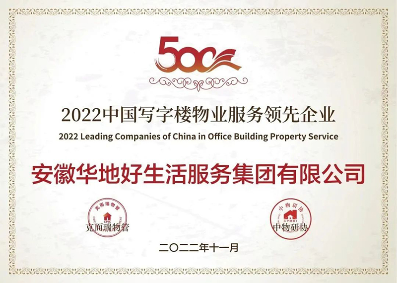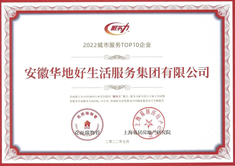 以卓越市場表現,強大品牌影響力,華地好生活集團榮獲2022年中國物業服務力百強企業TOP46、中國城市服務TOP10、中國物業服務企業綜合實力TOP70、中國寫字樓物業服務領先企業、國家科技型中小企業等諸多榮譽稱號。
