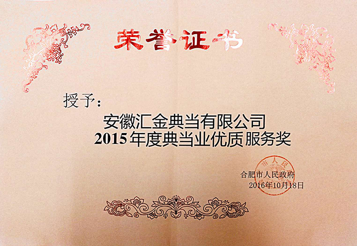 近日,合肥市人民政府發(fā)文《合肥市人民政府關(guān)于2015年度金融機構(gòu)支持地方發(fā)展先進(jìn)單位的通報》(合政秘〔2016〕103號),安徽匯金典當(dāng)有限公司(以下簡稱匯金典當(dāng))憑借在地方經(jīng)濟發(fā)展中所做出的突出貢獻(xiàn),榮獲了“2015年度典當(dāng)業(yè)優(yōu)質(zhì)服務(wù)獎”。獲此殊榮是地方政府及社會大眾對匯金典當(dāng)?shù)某浞终J(rèn)可。