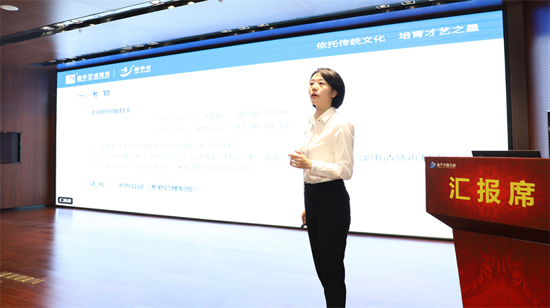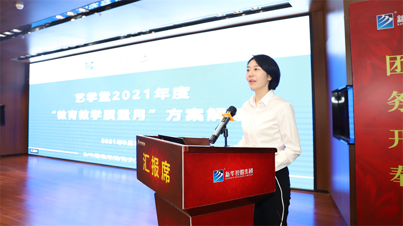 隨后,在激昂的樂曲和熱烈的掌聲中,主席臺(tái)領(lǐng)導(dǎo)走上舞臺(tái)共同開啟藝學(xué)堂教育教學(xué)質(zhì)量月啟動(dòng)儀式。啟動(dòng)儀式后,藝學(xué)堂教學(xué)管理中心助理總監(jiān)崔露璐做《教學(xué)管理制度培訓(xùn)》,對(duì)藝學(xué)堂教師管理制度做了詳細(xì)的解讀,并對(duì)日常教學(xué)規(guī)范提出了更高的要求。