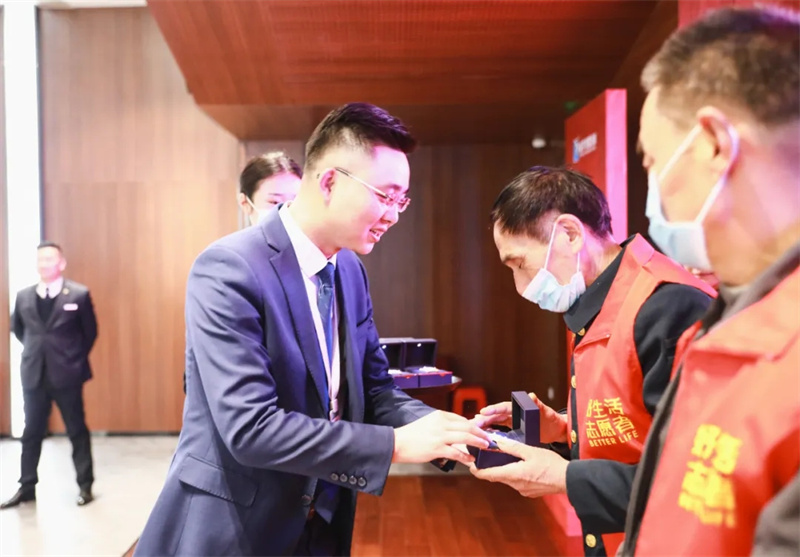 【華地好生活集團(tuán)副總經(jīng)理蔣凱授予志愿者徽章】